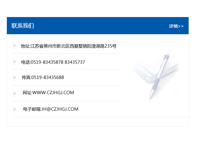 傳真:0519-83435688    郵編:213135    網址:WWW.czjhgj_com.wanyingdong.com    電子郵箱:JH@czjhgj_com.wanyingdong.com